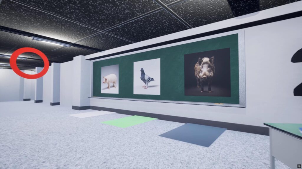 黒板に描かれた絵。近づくと音がする奇妙な部屋。